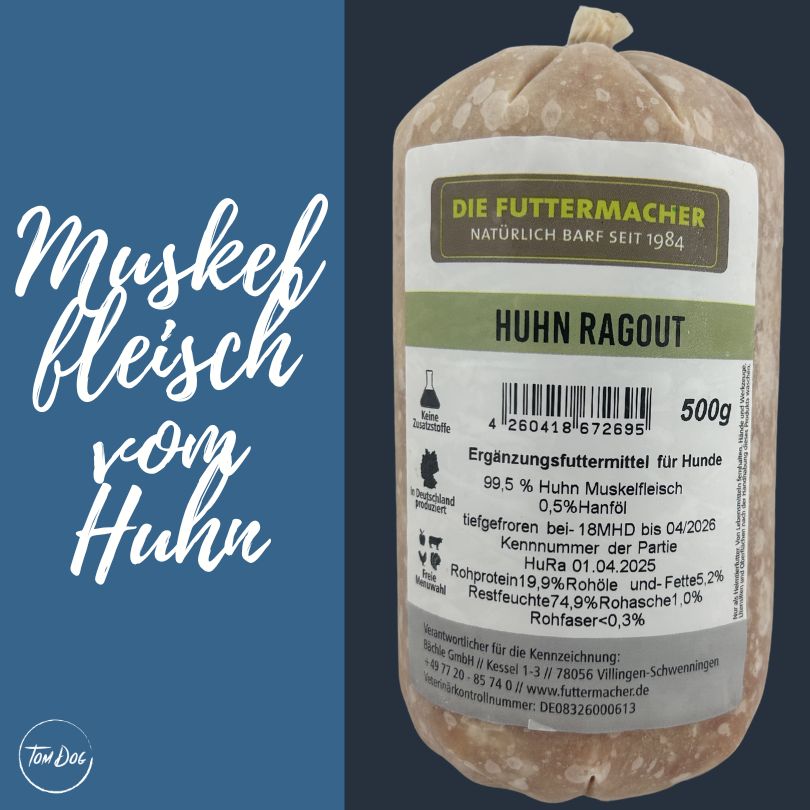 Muskelfleisch vom Huhn: Zur dauerhaften Fütterung bitte sinnvoll ergänzen